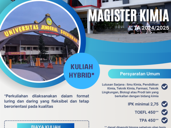 Laboratorium Kimia Fisik Jurusan Kimia FMIPA UNSOED merupakan fasilitas pendukung jurusan kimia untuk mengembangkan ilmu kimia di bidang Kimia fisik untuk dosen dan mahasiswa diUniversitas Mulawarman maupun perguruan tinggi lain melalui penelitian dan pengkajian yang berwawasan lingkungan serta kemajuan sains dan teknologi yang mendukung ilmu kimia.